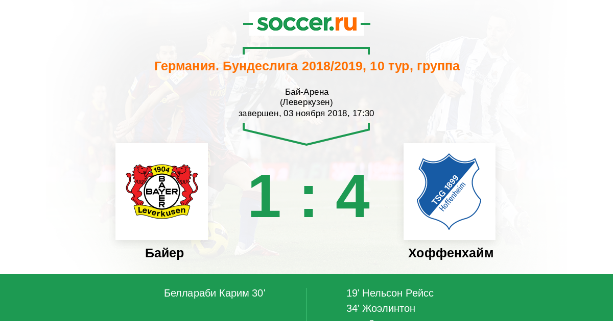 Оливер Бауманн получает свою порцию аплодисментов за великолепную игру в воротах. Карим Бельараби (Байер Леверкузен) бил в левый угол с края штрафной, но голкипер вытащил почти мертвый мяч.