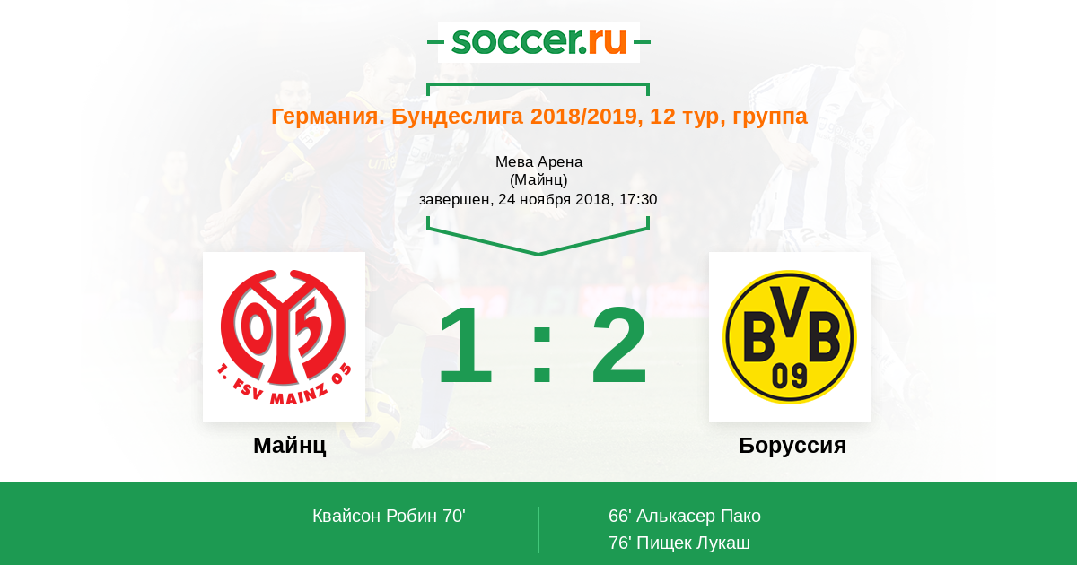 Лукаш Пишчек (Боруссия Дортмунд) получает мяч на отскоке за пределами штрафной и наносит удар по воротам. Мяч рикошетом от перекладины залетает в ворота.