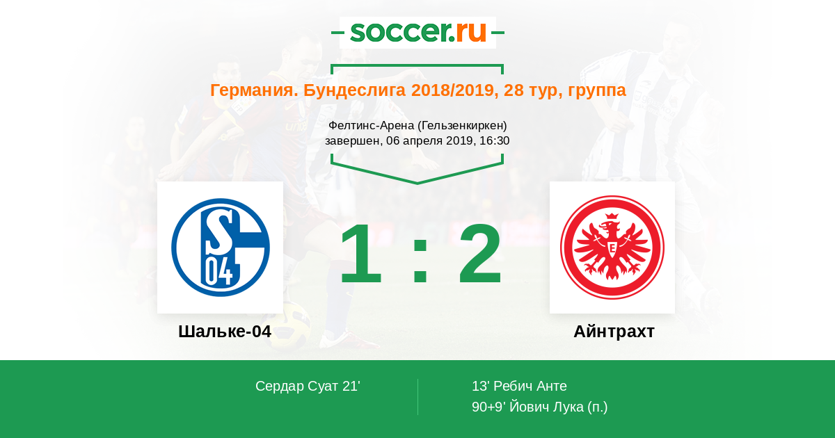 Мартин Хинтереггер (Айнтрахт Франкфурт) сделал рывок в центр на линию штрафной, после чего нанес плотный удар, однако мяч полетел выше ворот. Мяч покинул пределы поля. Шальке введет мяч в игру ударом от ворот.