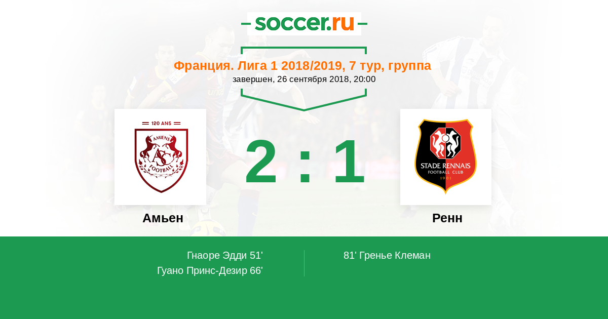 Саман Годдос делает идеальный пас, мяч хорошо обрабатывает Эдди Gnahore (Амьен). Он наносит удар низом, в угол ворот. Счет 1:0.