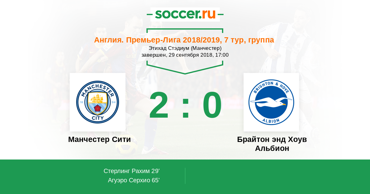 ГОЛ! Серхио Агуэро (Манчестер Сити) прошел сквозь оборону и с края штрафной нанес удар в нижний угол ворот. Мэттью Райан не имел шансов допрыгнуть. Счет 2:0.