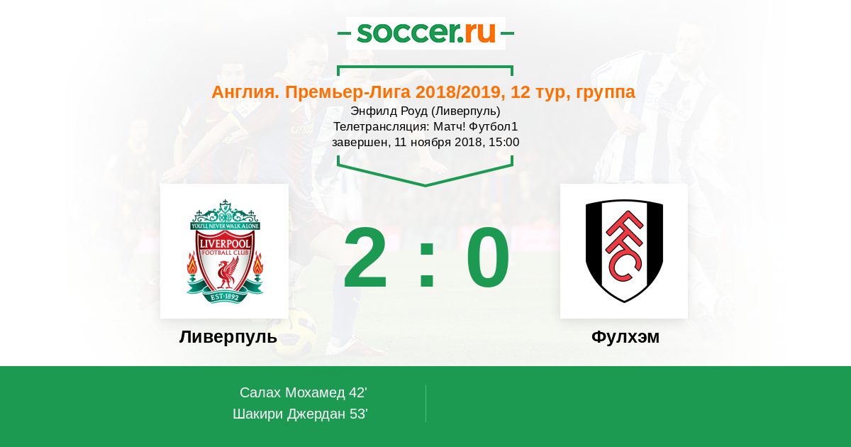 Доброго времени суток, уважаемые любители футбола! Рады приветствовать Вас на текстовой онлайн-трансляции матча двенадцатого тура АПЛ, в котором "Ливерпуль" сыграет с "Фулхэмом". Встреча пройдет в Ливерпуле на стадионе "Энфилд Роуд". Обслужит матч бригада арбитров, которую возглавит Пол Тирни.