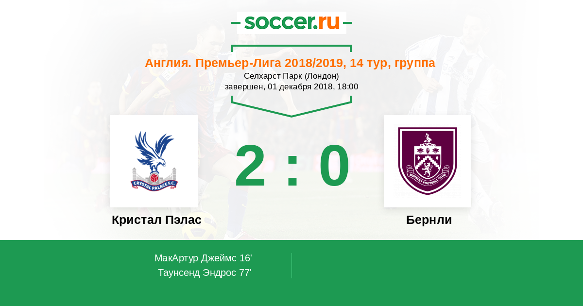 Это потрясающий гол! Джеймс Макартур (Кристал Пэлас) подбирает мяч за пределами штрафной площади и сильно бьет в левый угол ворот. Вратарь не имел шансов.