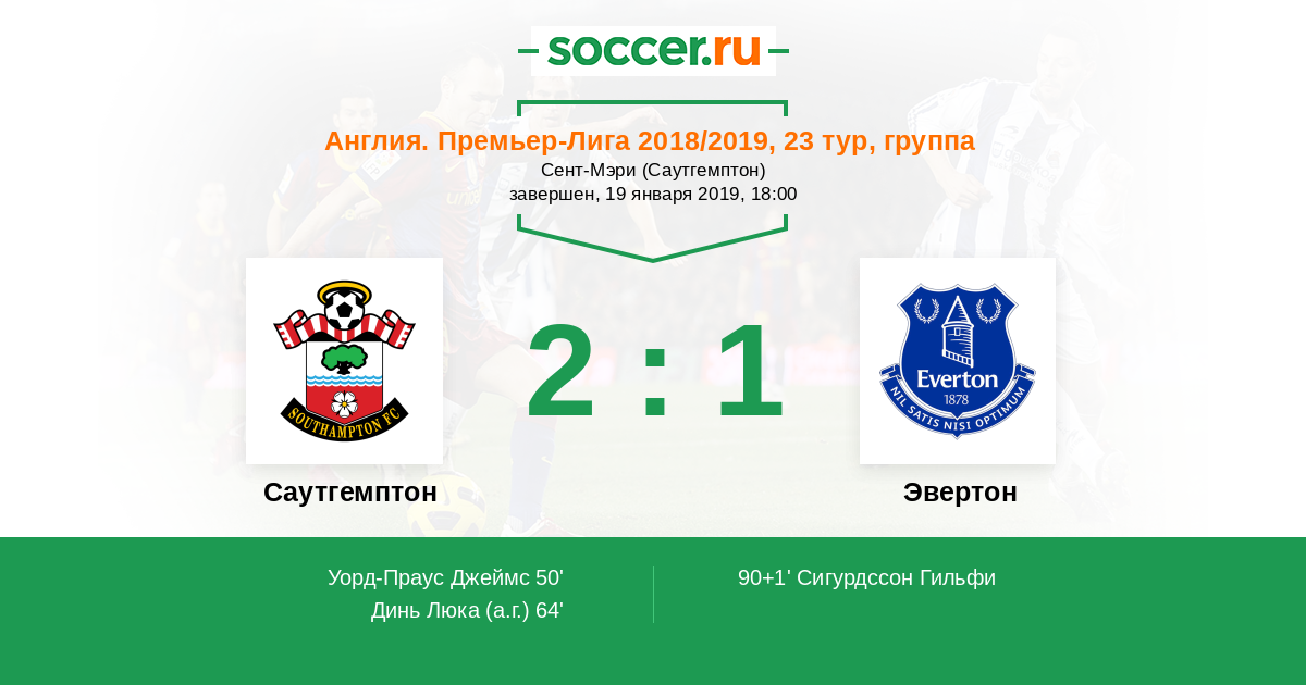 Джеймс Уорд-Проуз (Саутгемптон) сделал забег из средней линии, получив много свободного пространства после грамотной передачи от Дэнни Ингс. Удар он нанес неплохой, но мяч пролетел впритирку с правой штангой. Мяч ушел за линию ворот, и вратарь команды Эвертон произведет удар от ворот.