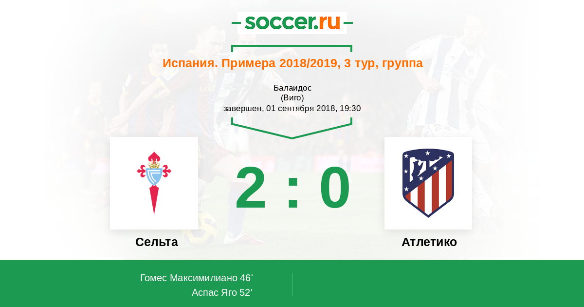 Яго Аспас (Сельта) после великолепной подачи направил мяч в правый угол ворот ударом головой. Без шансов для вратаря.