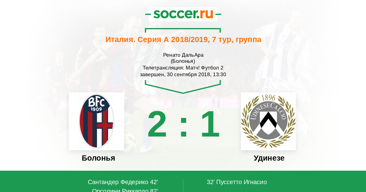Рикардо Orsolini (Болонья) профукал хорошую возможность для взятия ворот, нанеся чуть неточный удар со средней дистанции. Мяч попадает в штангу.