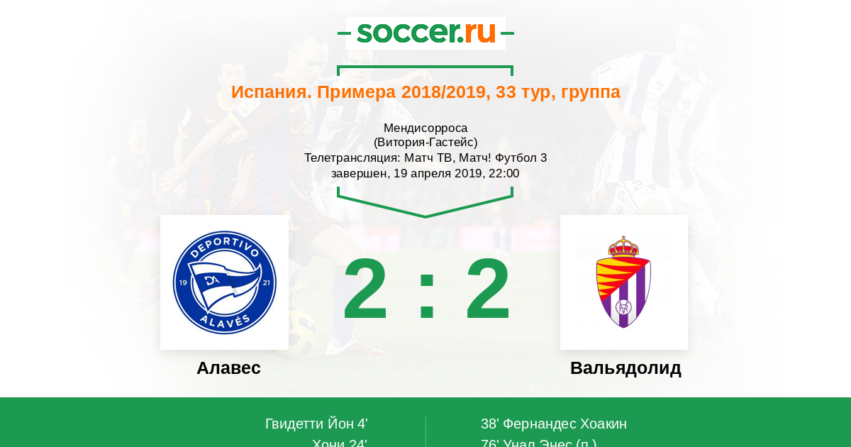 Джон Гвидетти (Алавес) отправил заброс в штрафную. Хороший навес, но защитники надежны были в данном эпизоде, и мяч выбит подальше. Судья показывает на угловой флажок. Алавес получает право на угловой.