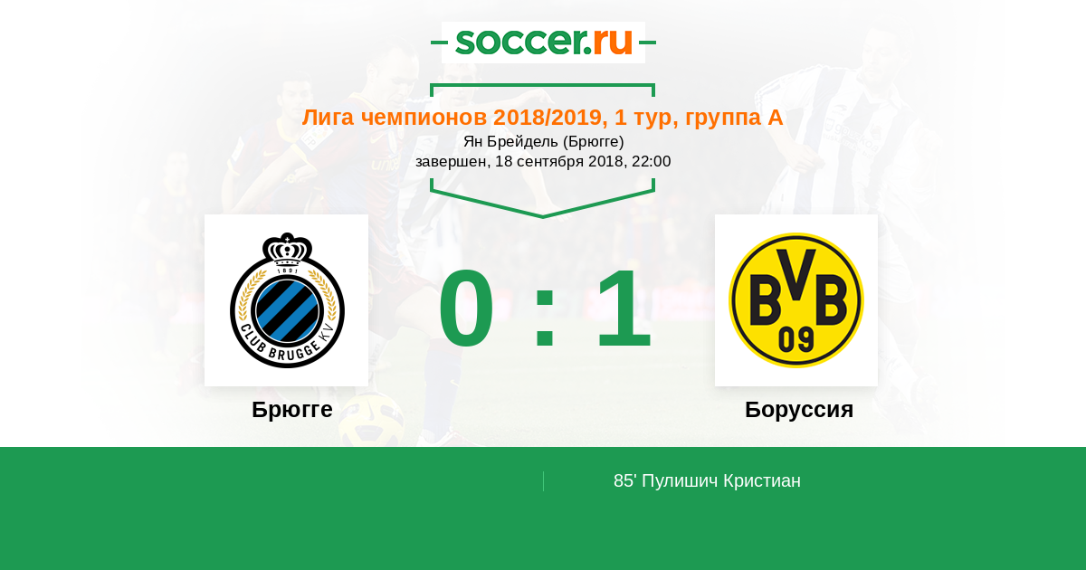 Кристиан Пулишич (Боруссия Дортмунд) делает подкат сбоку, но судья Danny Makkelie считает, что был фол. Брюгге зарабатывает право на опасный штрафной.