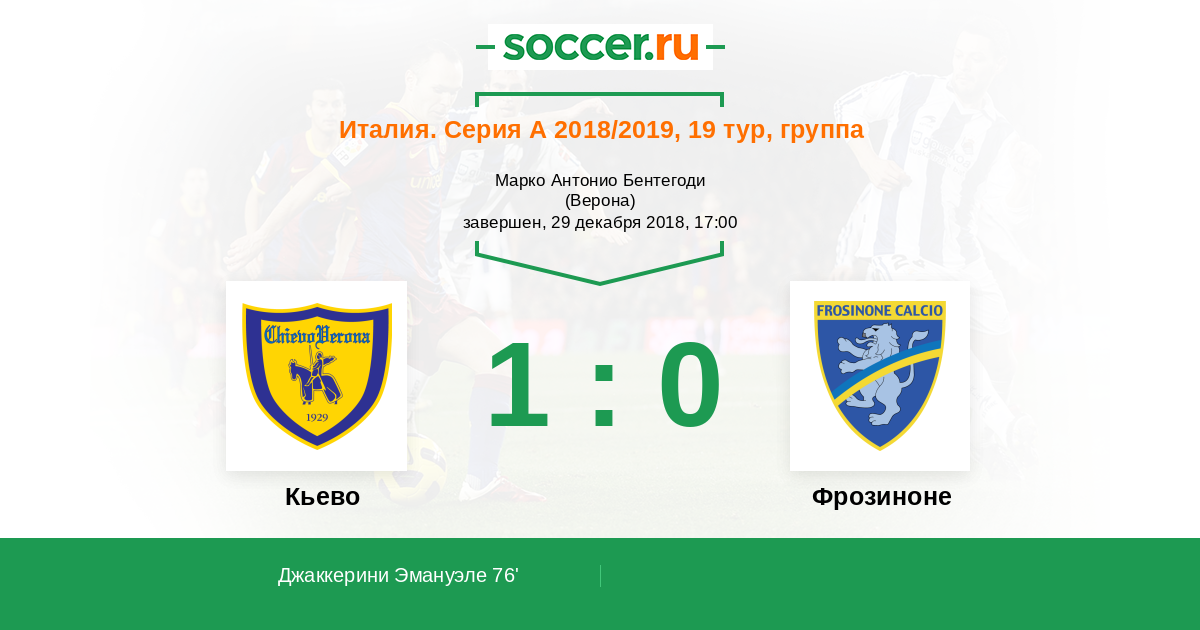 Марко Капуано (Фрозиноне), пытаясь добраться до мяча, грубо ударил соперника по ногам. Джанлука Рокки свистнул нарушение. Кьево получает право на штрафной.