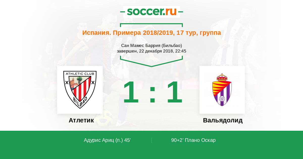 Гол! Точный прострел с самой линии от Энес Унал доходит до Oscar Plano (Вальядолид), который находился напротив ворот, он легко вколотил мяч по центру ворот. 1:1.