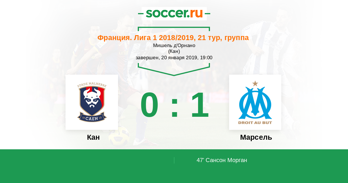 Кевин Стротман сделал отличный навес, а Морган Сансон (Марсель), выпрыгнув выше всех в штрафной, головой вколотил мяч в левый угол ворот. Удар был сильный и точный, Брис Самба не мог ничего поделать. 0:1.