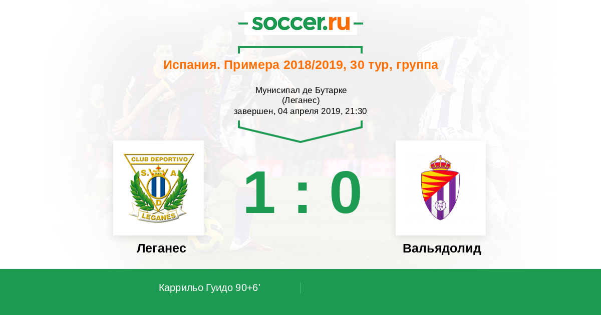 Жонатан Сильва (Леганес) мог оказаться в отличной позиции, но его техника подвела. Мяч покинул пределы поля. Вальядолид введет мяч в игру ударом от ворот.
