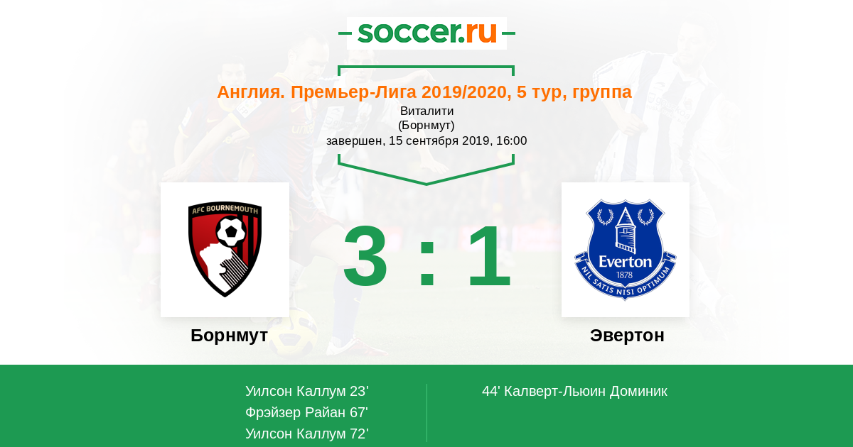 Каллам Уилсон (Борнмут) получил отскок во вратарской и нанес удар головой. Счет стал 1:0, после того как мяч оказался в сетке по центру ворот.