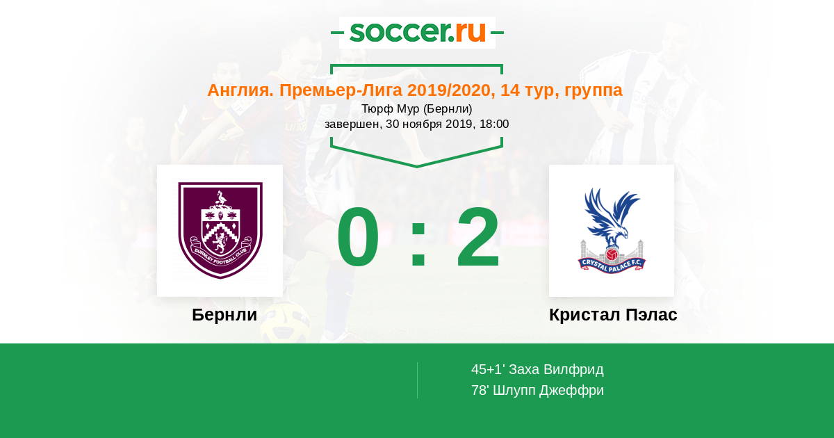Джеймс Тарковски (Бёрнли) укладывает оппонента на газон, Питер Bankes свистит фол. Кристал Пэлас получает право на стандарт.