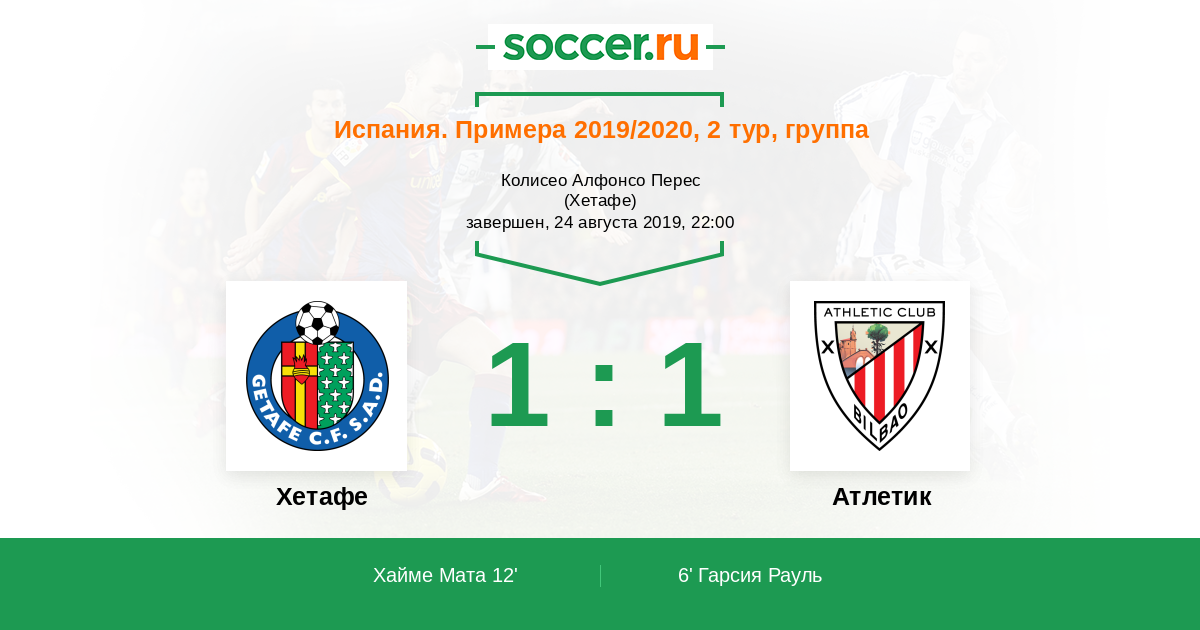 Это гол! Андер Капа сделал отличный голевой пас в штрафную, и Рауль Гарсия (Атлетик) выиграв борьбу за мяч, нанес точный удар в нижний правый угол ворот. Счет 0:1.