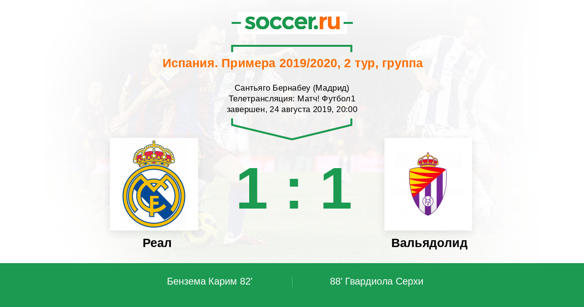 Карим Бензема (Реал Мадрид) имел отличный момент. Он нанес удар головой в правый угол ворот из хорошей позиции. Но пробил мимо ворот.