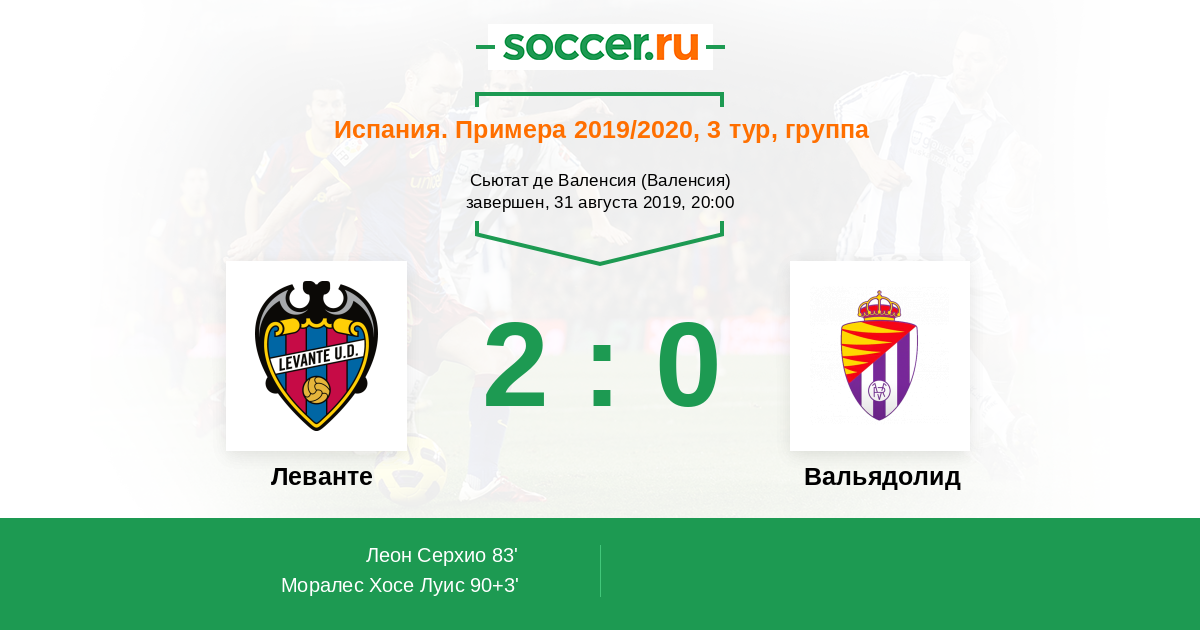 Жозе Моралес (Леванте) отправил заброс в штрафную, но один из защитников среагировал и отправил мяч подальше от ворот. Помощник судьи указал на угловой флажок, Леванте подаст его.