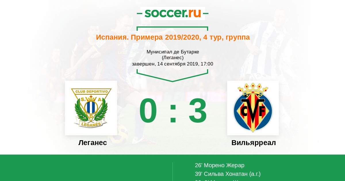 Леганес не создает опасного момента после углового, так как Серхио Асенхо (Вильярреал) сыграл первым на мяче.