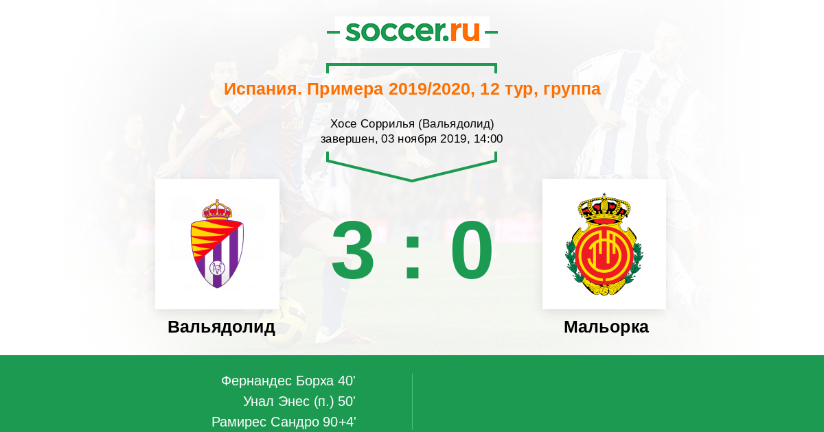 Хоакин Фернандес (Вальядолид) перепрыгнул всю оборону и из пределов вратарской нанес точный удар головой в правый угол ворот. У голкипера не было шансов среагировать. Счет 1:0.