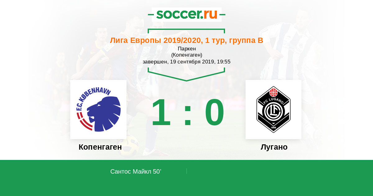 Фабио Дапрела (Лугано) слишком грубо отнимал мяч, и Fabio Verissimo был вынужден прервать игру. Копенгаген получает право на штрафной.