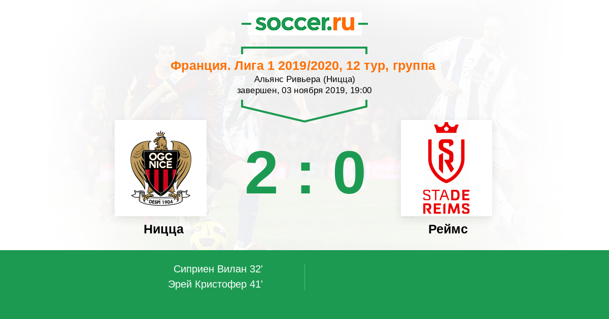 Алексис Claude Maurice (Ницца) поборолся за мяч после штрафного удара и смог пробить, находясь на углу штрафной площади. С такой дистанции надо забивать, но мяч прошел в нескольких метрах мимо ворот. Мяч покинул пределы поля. Реймс введет мяч в игру ударом от ворот.