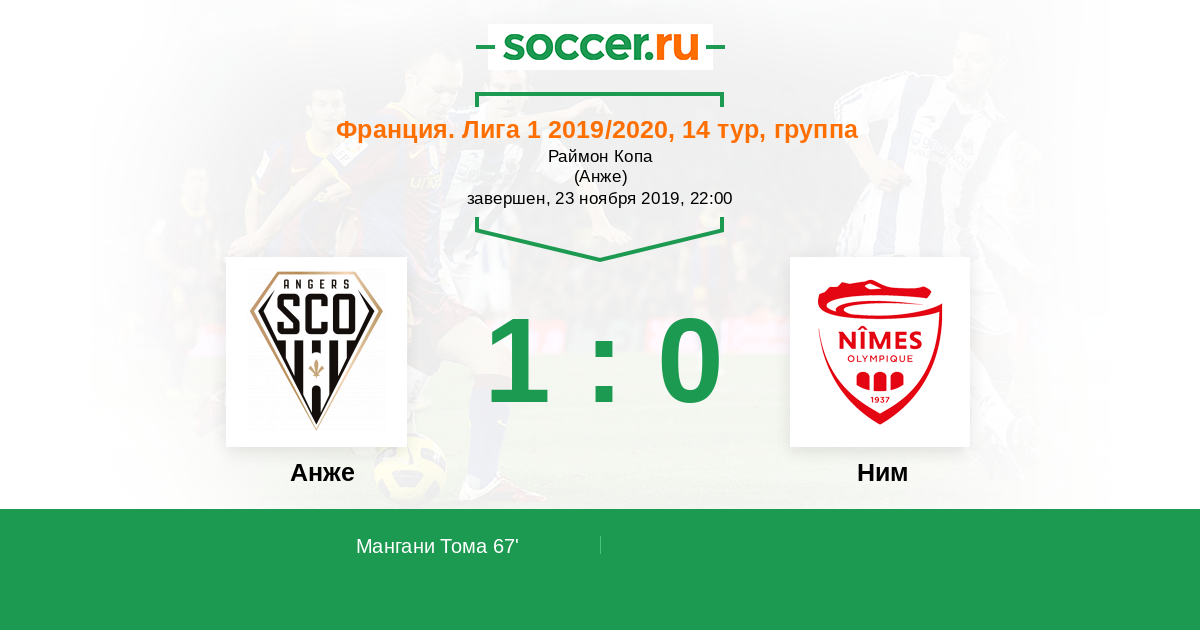 Родриге Казимир Нинга (Анжер) врывается в штрафную и наносит удар по центру ворот, но Пол Бернардони отбивает мяч. Слышим мы свисток судьи. Это значит, что Анже пробьет угловой.