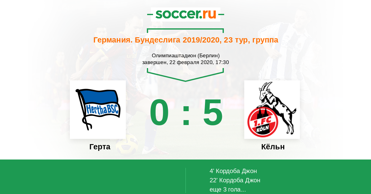 Гол! Только что автором голевой передачи стал Флориан Каинц, Джон Кордоба (Кёльн) получил мяч на углу штрафной, пробил, да еще мяч срикошетил о кого-то. Руне Ярштайн ничего не мог поделать после этого рикошета. 0:1.
