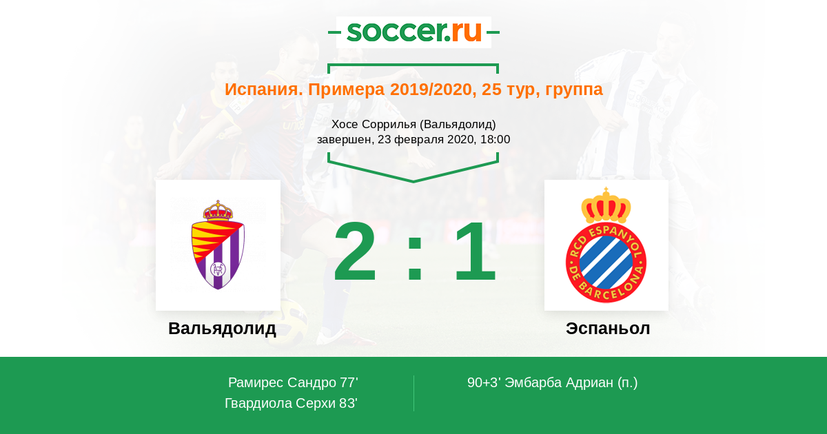 Сандро Рамирес (Вальядолид) не смог нанести прицельный удар с близкого расстояния после подачи с углового, мяч полетел далеко от левой штанги.