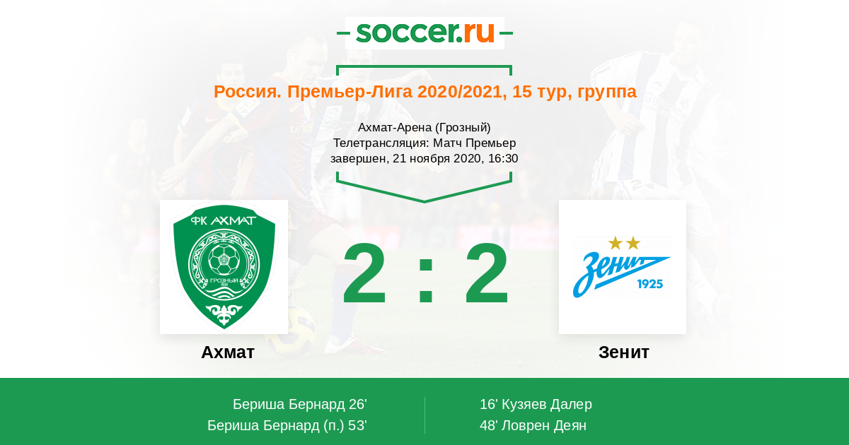После паузы на игры национальных сборных, клубный футбол постепенно возвращается в нашу жизнь. В 15-м туре РПЛ действующий чемпион страны "Зенит" отправляется на выезд в Грозный к "Ахмату". Гости считаются фаворитами, однако хозяева не собираются сдаваться без борьбы. "Ахмат" выиграл три крайних матча и набрал приличный ход, но справится с "Зенитом" будет непросто. Сайт https://www.soccer.ru проведёт прямую текстовую онлайн трансляцию матча, следить за событиями на поле и комментировать игру для вас будет Старчеус Сергей.