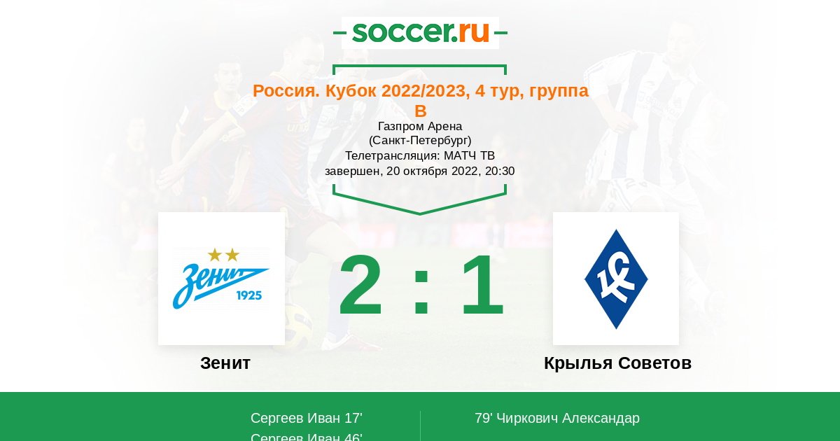 Обновлённый формат Кубка России в самом разгаре, сегодня в одном из 2-х матчей пришла очередь сыграть командам группы "B", питерский "Зенит" на своём поле принимает самарские "Крылья Советов". Ситуация в этой группе сложилась таким образом, что "Зенит" оказался в непростом положении и сегодня им необходимо побеждать. Сайт https://www.soccer.ru проведёт прямую текстовую онлайн трансляцию матча, следить за событиями на поле и комментировать игру для вас будет Старчеус Сергей.