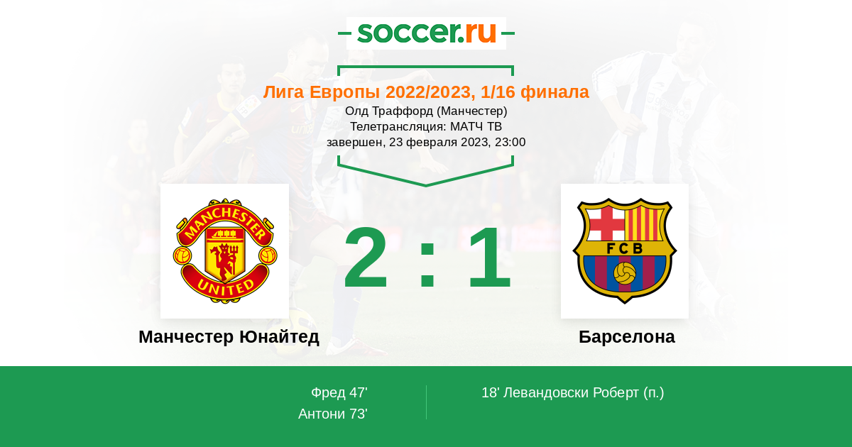 Самое настоящее зрелище сегодня ожидает всех любителей футбола! В ответном матче 1/16 финала Лиги Европы на "Олд Траффорде" сыграют "Манчестер Юнайтед" и "Барселона". Команды не стали откладывать всё на ответную встречу и уже в первом матче устроили штурм ворот друг друга, в итоге была зафиксирована боевая ничья 2:2. Увидим ли мы и сегодня много голов? Сайт https://www.soccer.ru проведёт прямую текстовую онлайн трансляцию матча, следить за событиями на поле и комментировать игру для вас будет Старчеус Сергей.