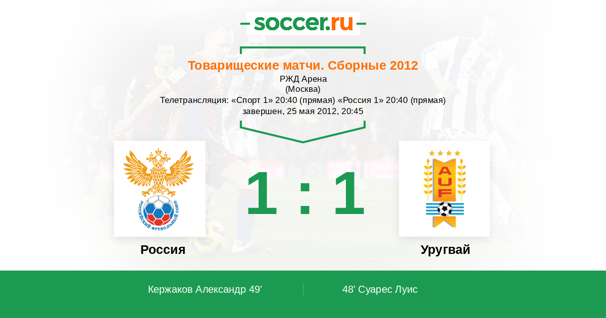 Мы приветствуем Вас на товарищеском матче между сборными России и Уругвая! Прямую текстовую трансляцию проведет комментатор Soccer.Ru Антон Сазонтов. Добро пожаловать!