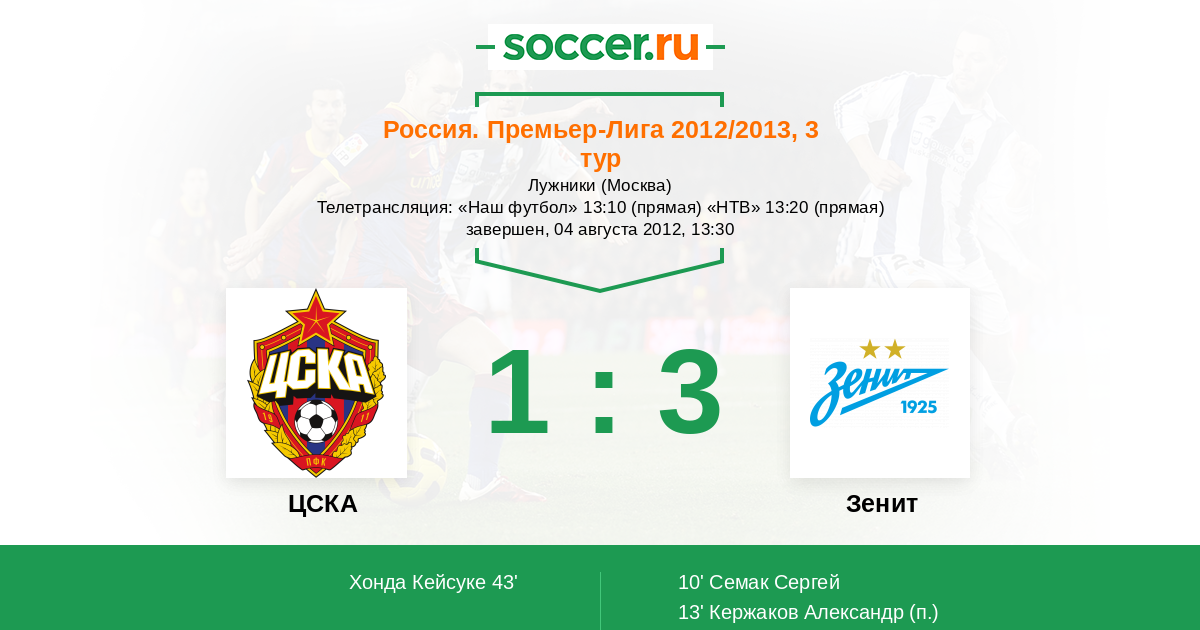 Мы приветствуем Вас на центральном матче 3-го тура российской футбольной Премьер-лиги, в котором ЦСКА сыграет с "Зенитом"! Прямую текстовую трансляцию проведет комментатор Soccer.Ru Антон Сазонтов. Добро пожаловать!