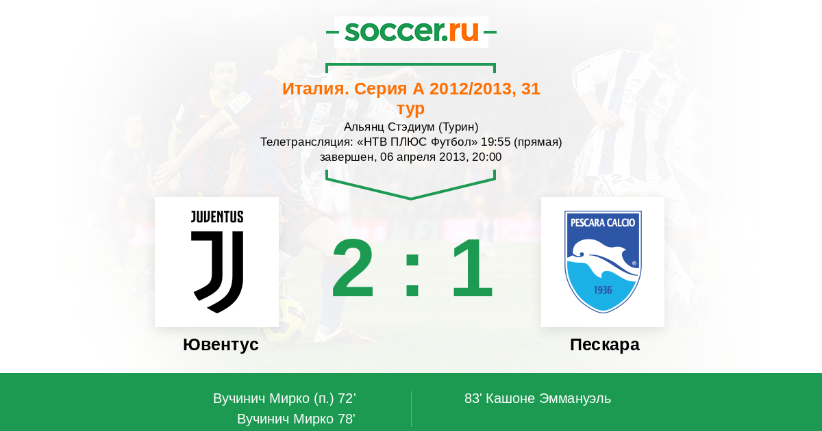 Мы приветствуем Вас на матче 31-го тура итальянской Серии А, в котором "Ювентус" принимает "Пескару". Прямую текстовую трансляцию проведет комментатор Soccer.Ru Антон Сазонтов. Добро пожаловать!