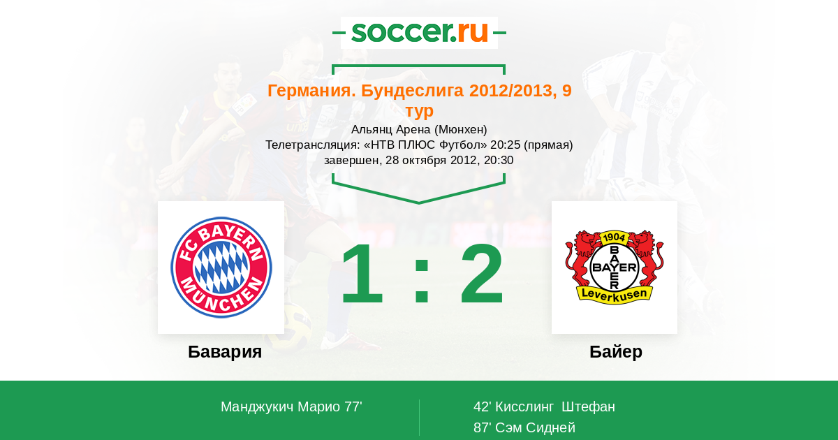 Мы приветствуем Вас на матче 9-го тура немецкой Бундеслиги, в котором "Бавария" принимает "Байер". Прямую текстовую трансляцию проведет комментатор Soccer.Ru Антон Сазонтов. Добро пожаловать!