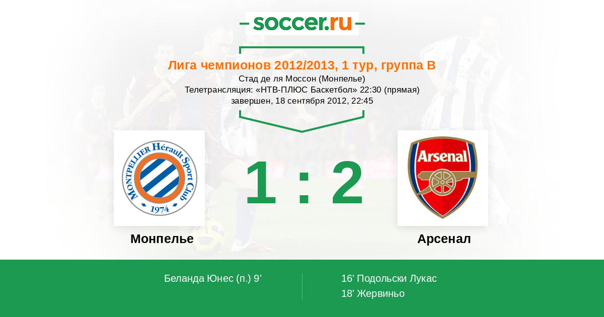 Мы приветствуем Вас на матче группового этапа Лиги Чемпионов, в котором "Монпелье" принимает "Арсенал". Прямую текстовую трансляцию проведет комментатор Soccer.Ru Антон Сазонтов. Добро пожаловать!