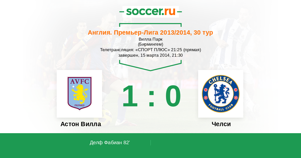 Мы приветствуем Вас на матче 30-го тура английской Премьер-лиги, в котором "Астон Вилла" принимает "Челси". Прямую текстовую трансляцию проведет комментатор Soccer.Ru Антон Сазонтов. Добро пожаловать!