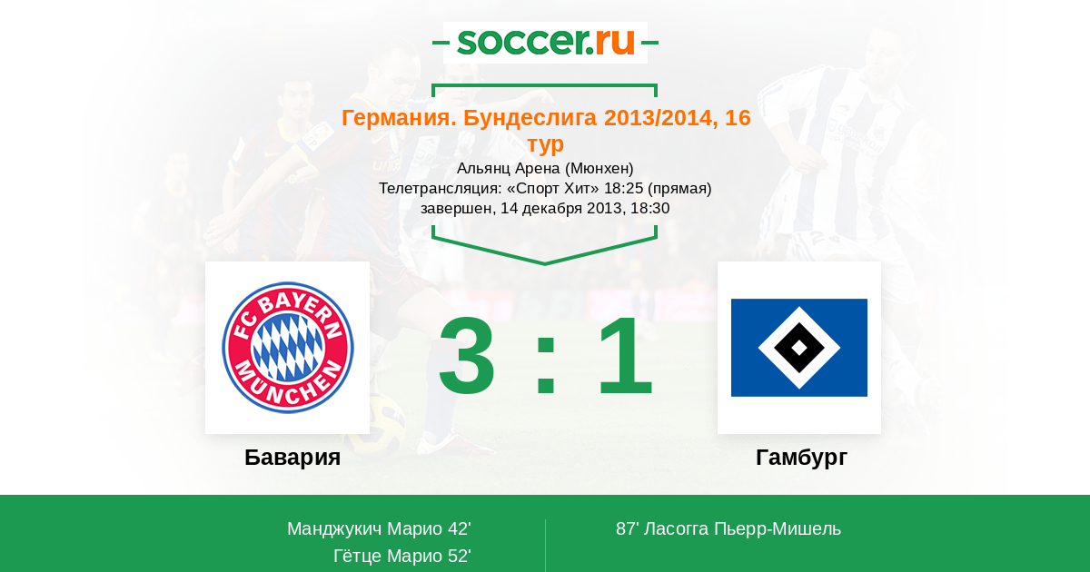 Мы приветствуем Вас на матче 16-го тура немецкой Бундеслиги, в котором "Бавария" принимает "Гамбург". Прямую текстовую трансляцию проведет комментатор Soccer.Ru Антон Сазонтов. Добро пожаловать!
