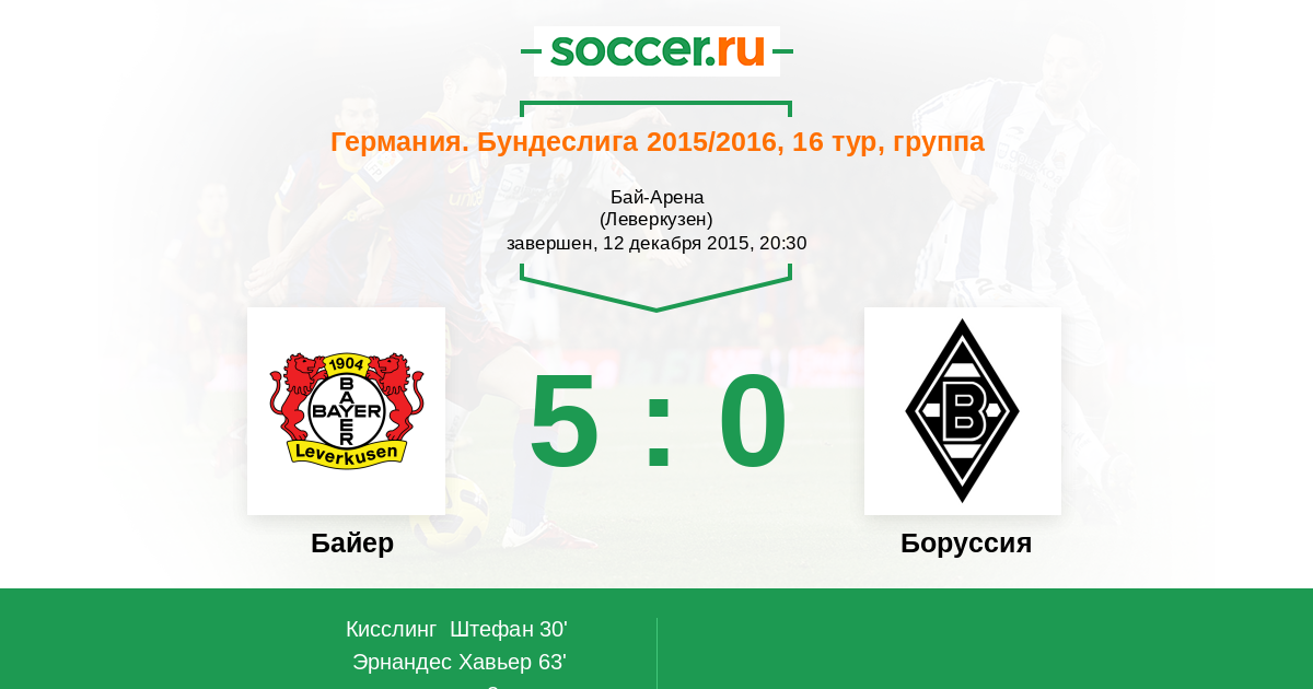 Логотип Байер Эрнандес Хавьер (7) (Логотип Байер Кисслинг Штефан (11, п)) - 4:0