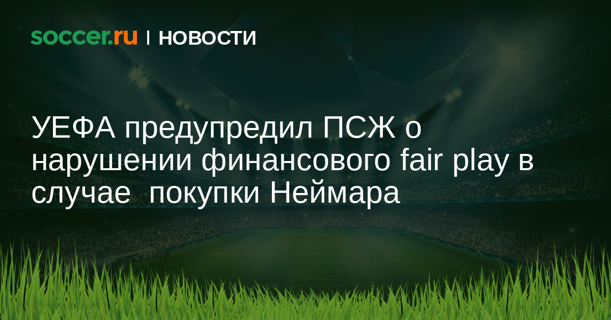 УЕФА предупредил ПСЖ о возможном нарушении правил финансового fair play в случае приобретения нападающего «Барселоны» Неймара. Трансфер футболиста оценивается в 222 миллиона евро, плюс к этому Неймару полагается подписной бонус в 50 миллионов евро. Если парижане заплатят такие деньги, то рискуют нарушить правила финансового fair play.
