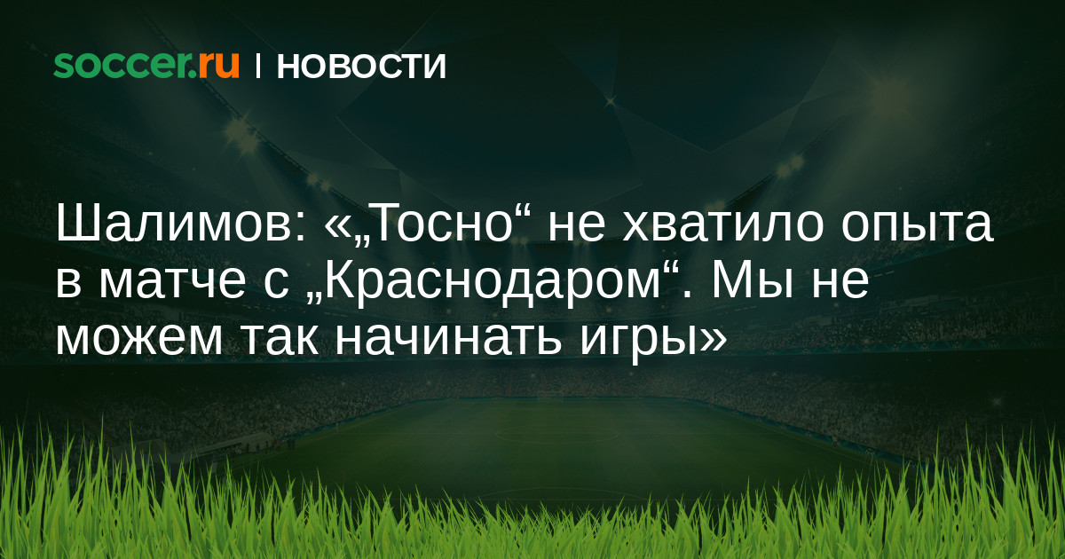 Наставник «Краснодара» Игорь Шалимов считает, что «Тосно» в матче с его командой не хватило опыта: