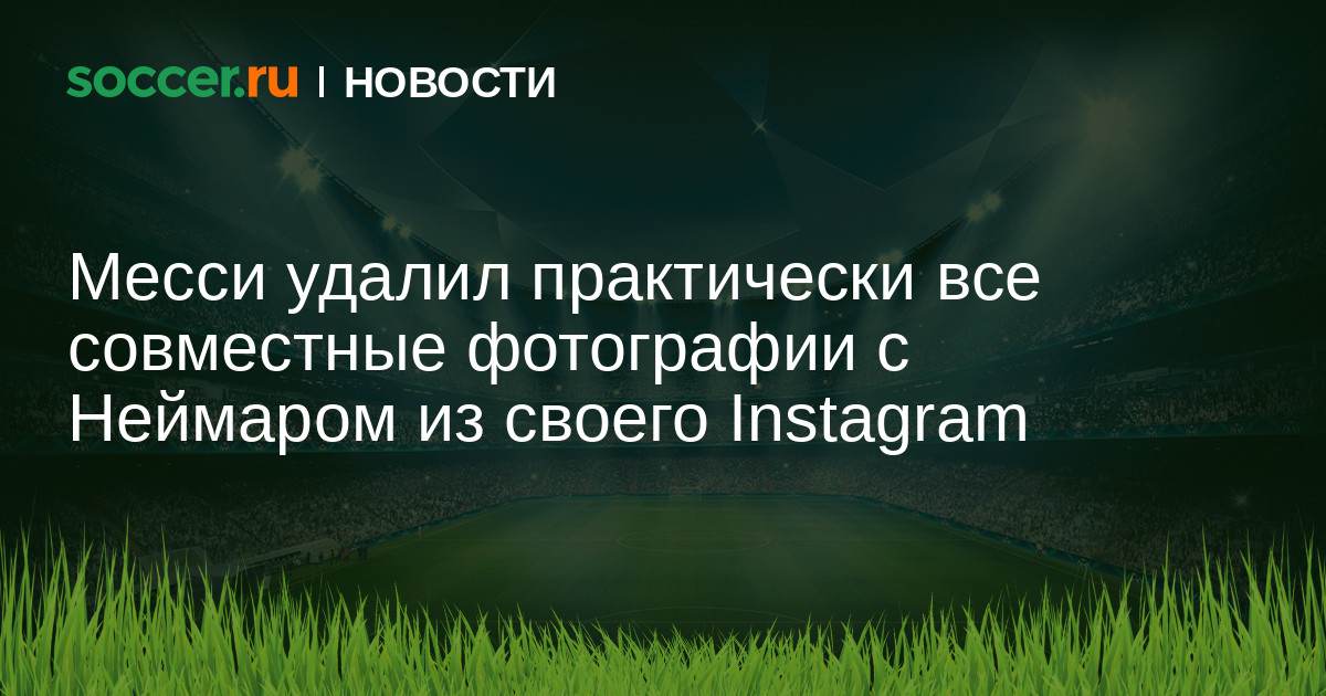 Нападающий «Барселоны» Лионель Месси удалил из своего Instagram почти все совместные фотографии с форвардом каталонцев Неймаром. Остался лишь снимок, датированный еще 2013 годом. На нем Месси запечатлен вместе с Неймаром, Дани Алвесом, Адриано и Пинто. Последние трое по разным причинам уже не являются игроками «Барсы».