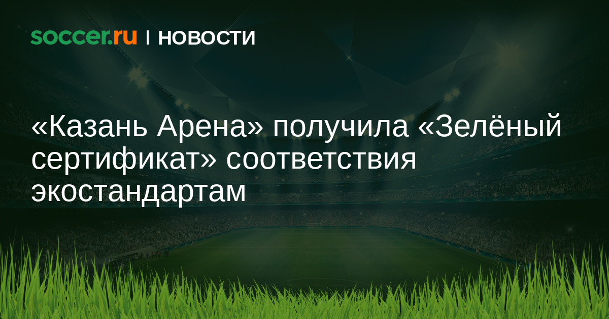 Стадион «Казань Арена» получил «Зелёный сертификат» соответствия экологическим стандартам согласно критериям «РУСО. Футбольные стадионы». Сообщается, что казанский стадион первым из арен ЧМ-2018 прошел эту экспертизу.