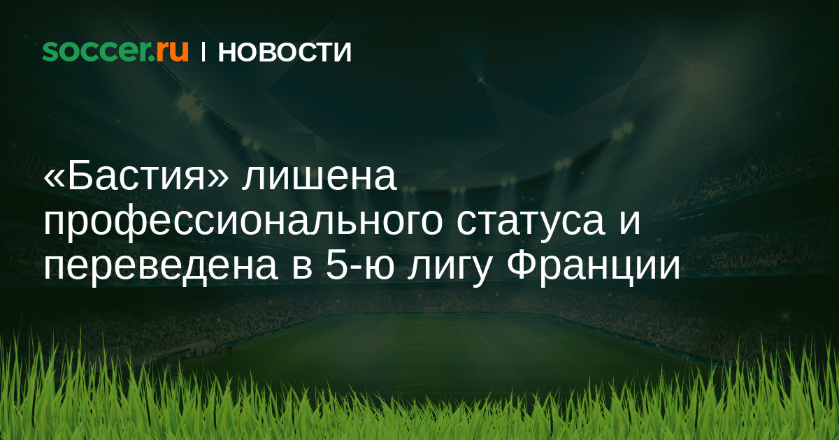 «Бастия», которая в прошлом сезоне выступала в высшем дивизионе чемпионата Франции, лишена профессионального статуса. Клуб объявил о банкротстве. Руководство командой возьмут на себя болельщики клуба, а выступать команда будет в Национальном дивизионе 3 — пятой по силе лиге Франции.