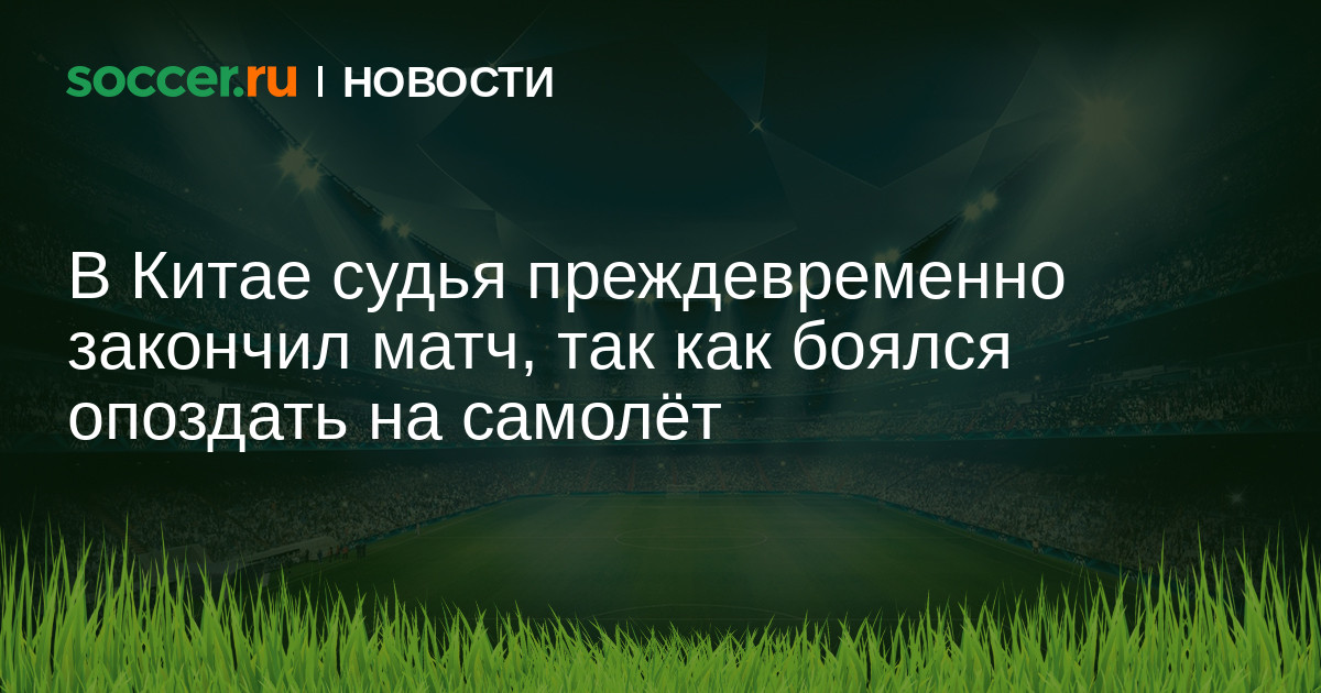 В Китае матч резервных команд между клубами «Ханчжоу Гринтаун» и «Мейксиан Хакка» закончился раньше запланированного времени. Главный арбитр встречи очень боялся опоздать на самолет, поэтому в первом тайме команды сыграли лишь 40 минут, а во втором судья дал провести на поле 38 минут. После чего он поспешно ретировался.