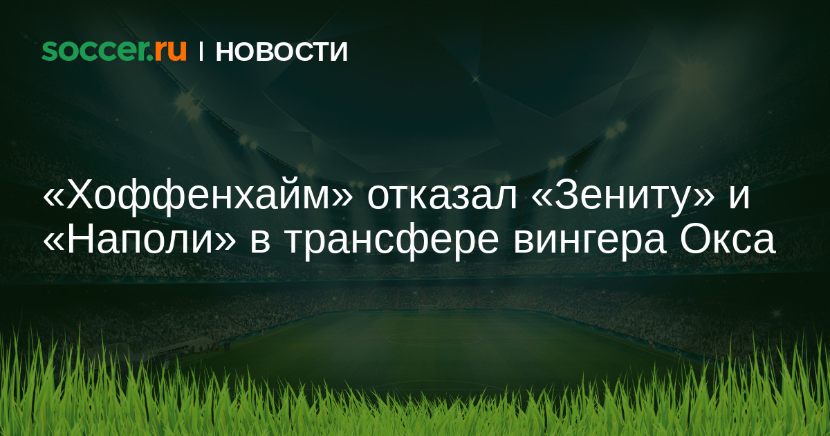 «Хоффенхайм» отклонил предложения «Зенита» и «Наполи» по вингеру Филиппу Оксу, так как намерен сохранить 20-летнего футболиста в команде, утверждает источник. Сообщается, что «Хоффенхайм» готов рассмотреть предложения из низших лиг Германии о годичной аренде игрока.