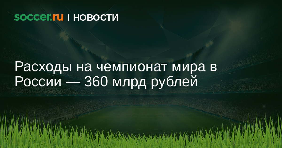 Расходы на организацию и проведение чемпионата мира 2018 года составят порядка 360 млрд рублей. Об этом сообщил президент РФС Виталий Мутко.