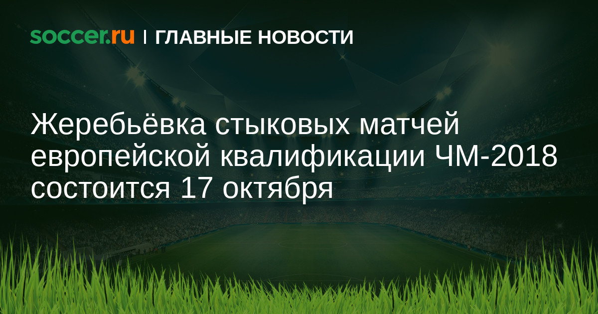 Жеребьевка стыковых матчей отборочного турнира чемпионата мира-2018 среди европейских сборных состоится 17 октября в Цюрихе.