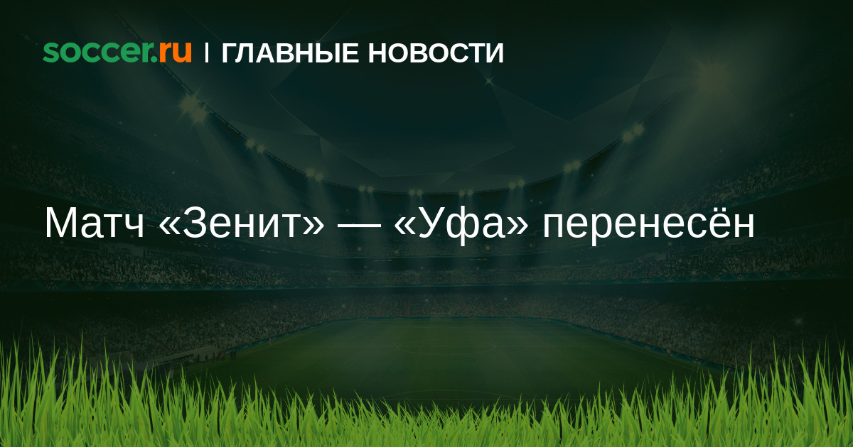 Пресс-служба РФПЛ сообщает о том, что матч 10-го тура чемпионата России между «Зенитом» и «Уфой» перенесен: