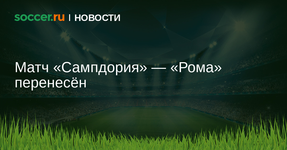 Матч 3-го тура чемпионата Италии между «Сампдорией» и «Ромой» перенесен.